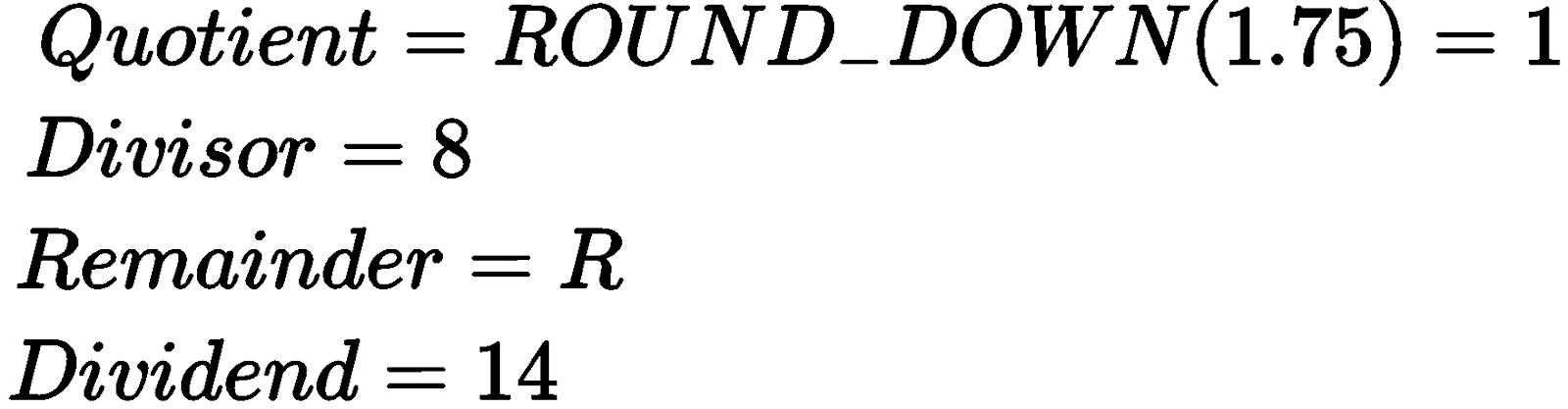 ALWAYS ROUND DOWN THE QUOTIENT.